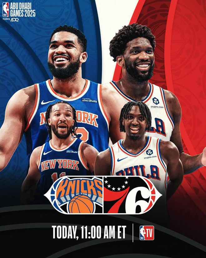 NBA官方晒出一张海报,尼克斯内外双核唐斯、布伦森,以及76人的内外双核恩比德与马克西均出现在海报上。