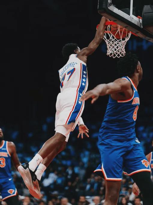 随后,76人官方社媒更新动态,晒出了埃奇库姆比赛炸裂扣篮瞬间。以下为官方晒图: