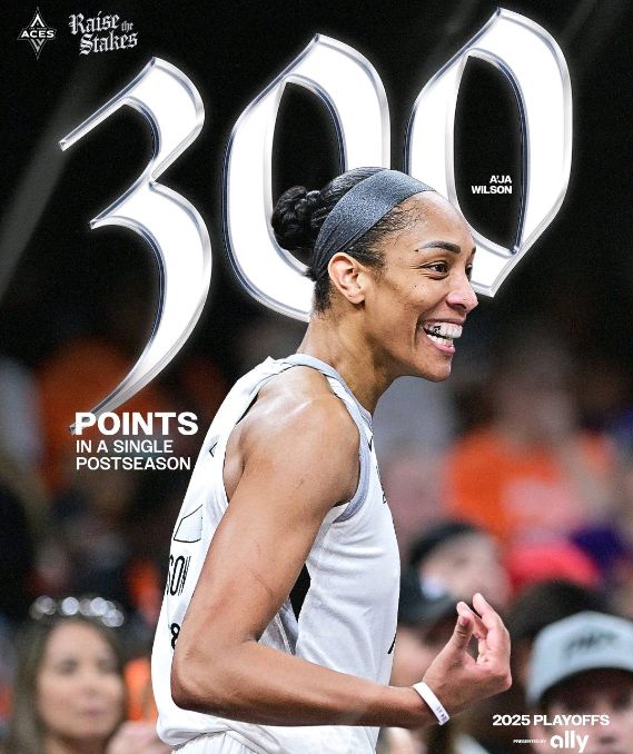 威尔逊本赛季的季后赛总得分突破300分大关,成为WNBA历史首人。